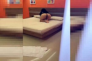 The sexy ass of my friend's mom preparing for rest, her huge curves teasing in the room.