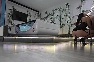 My Friend's Beautiful Wife Enjoys Jacuzzi In Motel Before Fucking, She Loves Cock