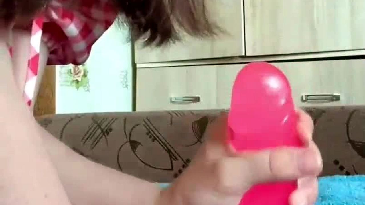 Innocent Girl Plays with Big Dildo Through Pantyhose Until She Cums!