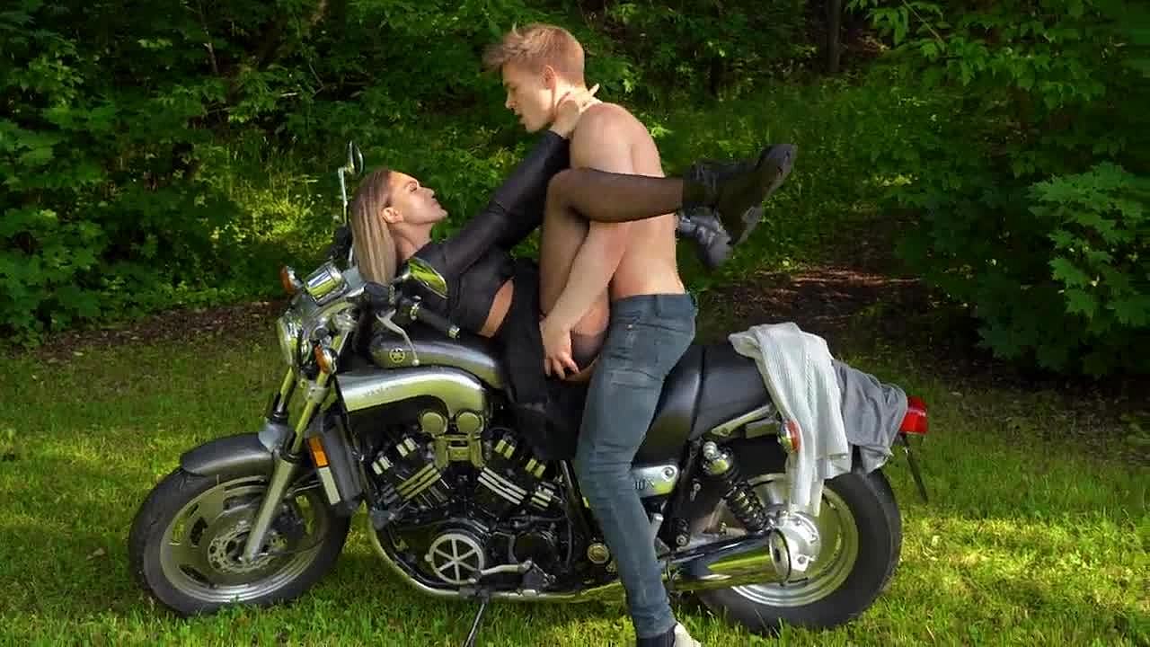 Risky ride on motorcycle in the park