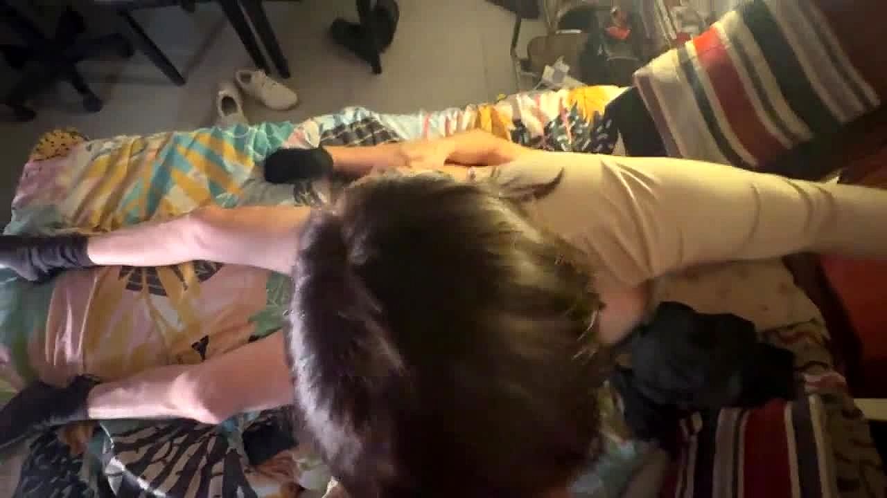 Best gift for old grandpa, a rough threesome with 24-year-old finishing in her mouth