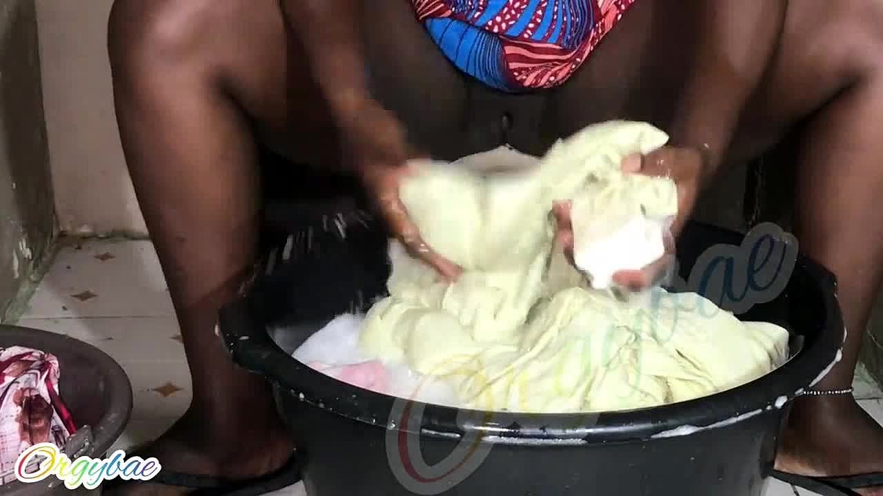Why is the housewife shaving her pussy during laundry?