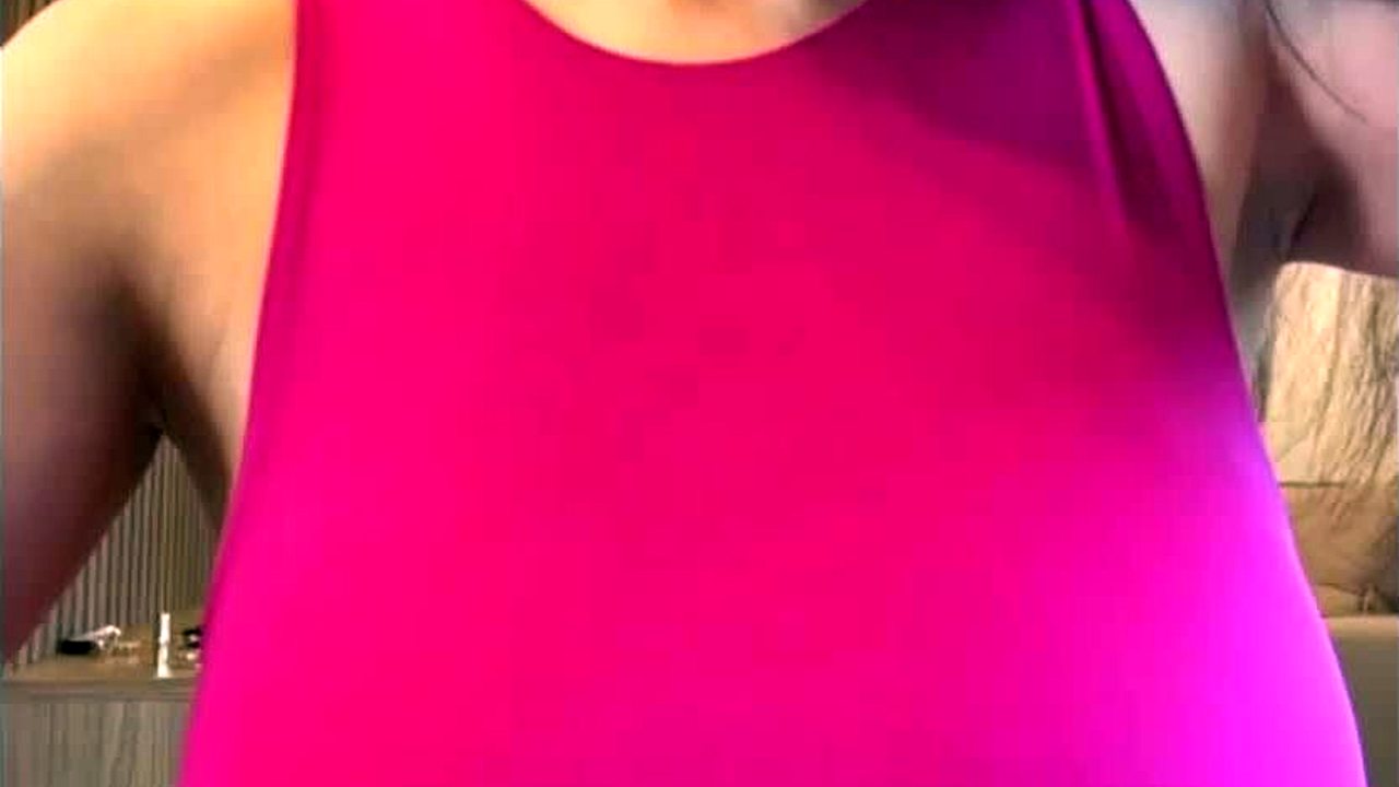 In this homemade video, the stepmother sucks her big milky tits outdoors