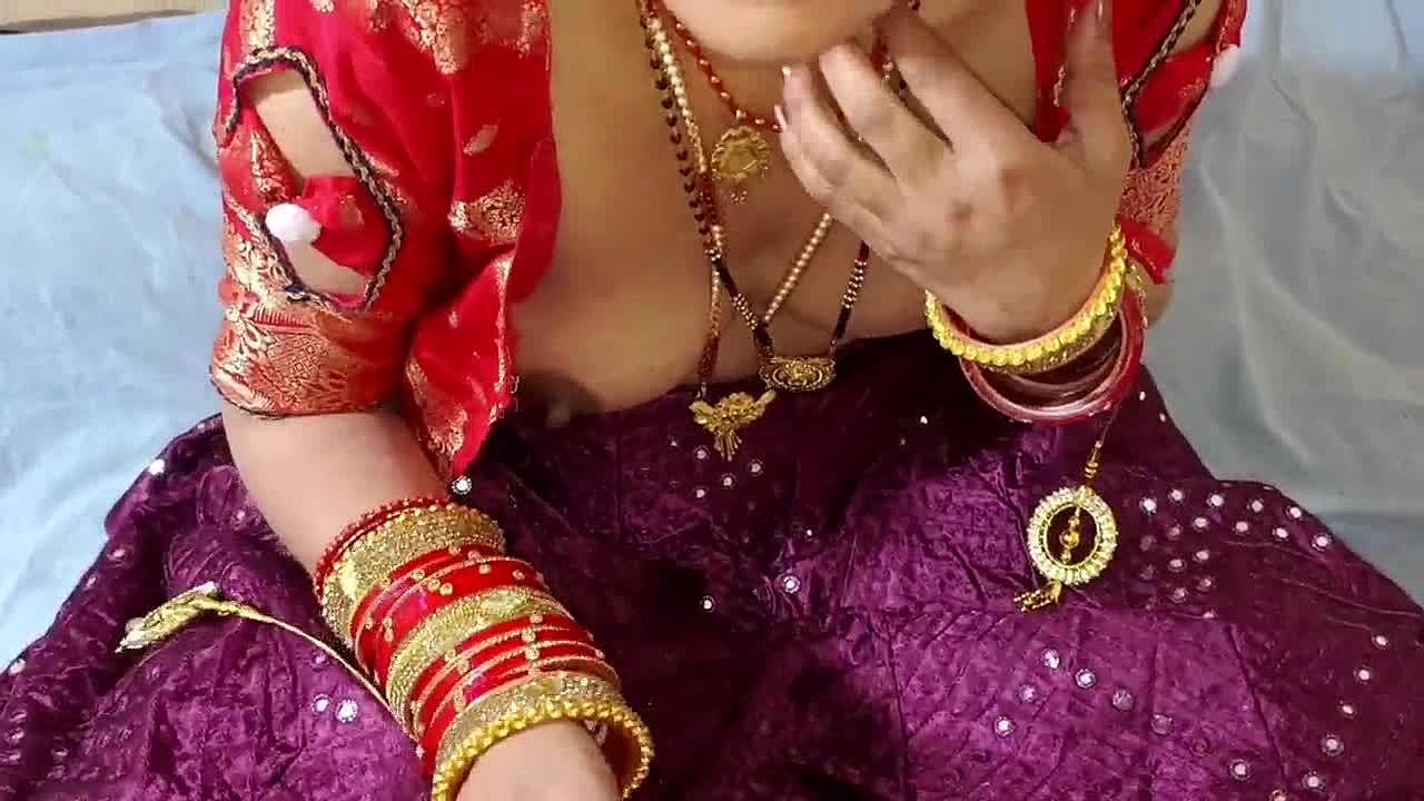 The stepbrother pulls out the sister-in-law's breasts on the bed in lehenga blouse