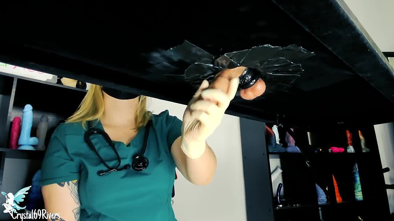 Oh god i feel so naughty with this nurse milking my big cock using toys and gloves at hospital desk