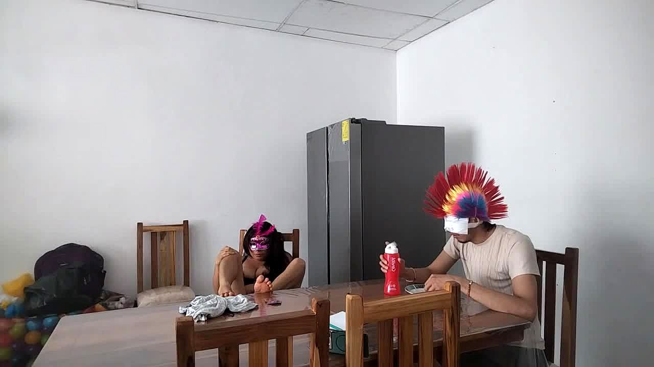 Housemaid says, 'Watch me touch myself with this dildo.'