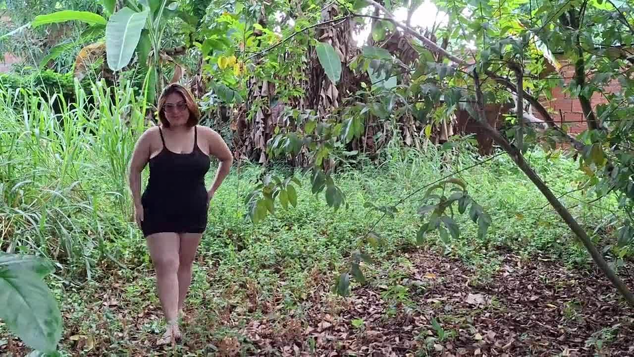 Big ass latina girl shakes her plump tits while dancing naked in the garden