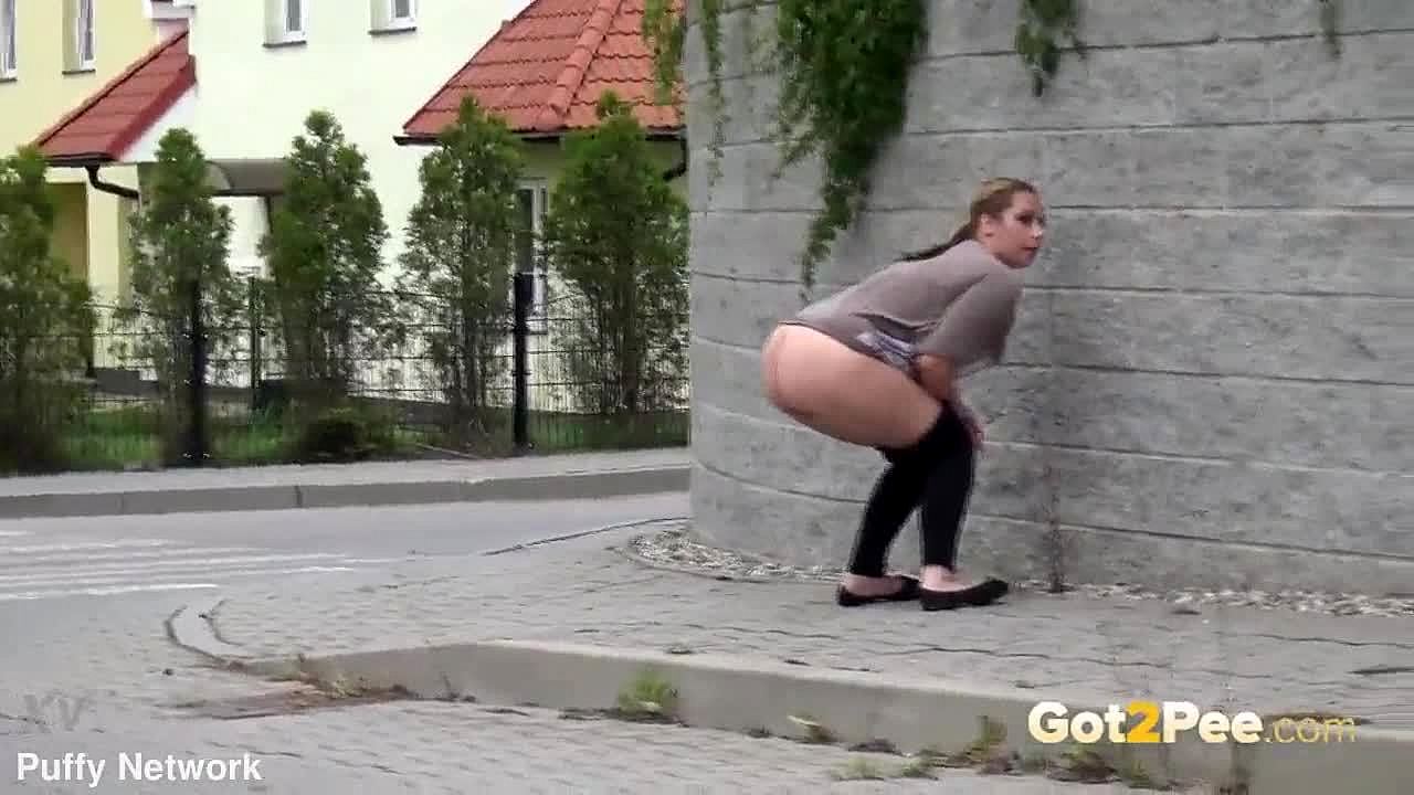Is city pissing the sexiest? Watch this blonde with bubble butt outdoor voyeur