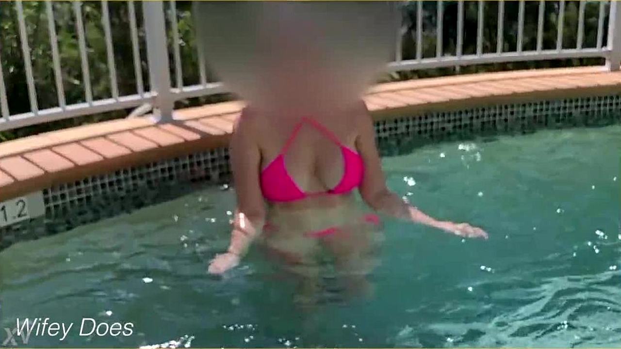 Wife flashes tits in hotel pool