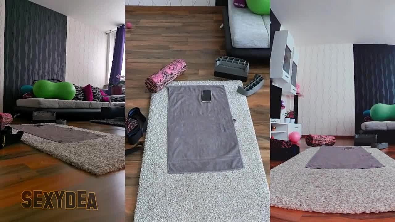 Diving into naked workout with big ass shaking in triple cam view
