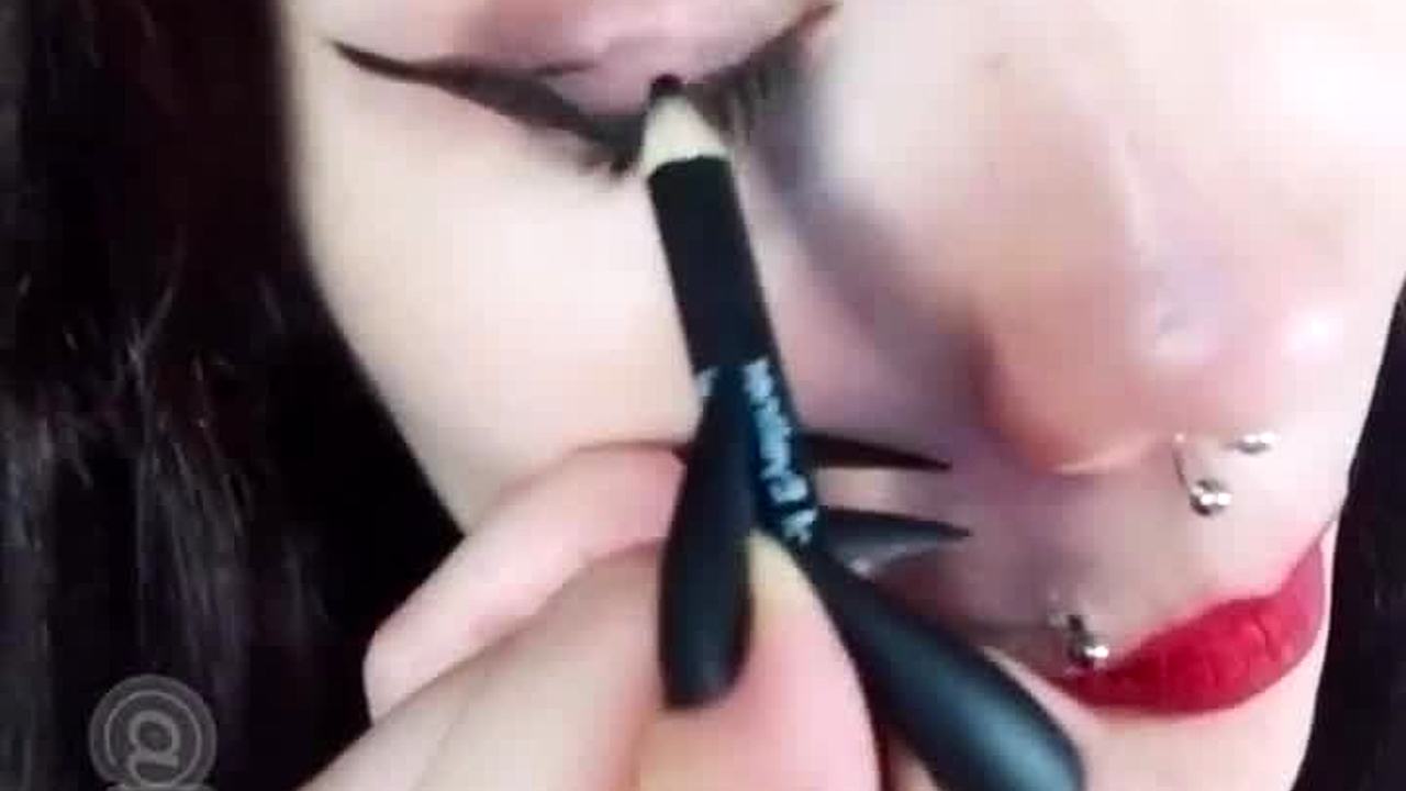 Backstage of this hot brunette not my sister with long hair and piercing.