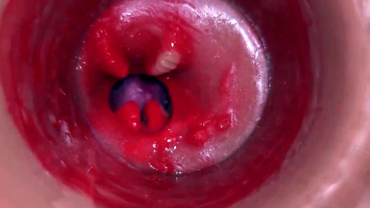 Camera captures inside vagina during cervix POV creampie session in close-up action.