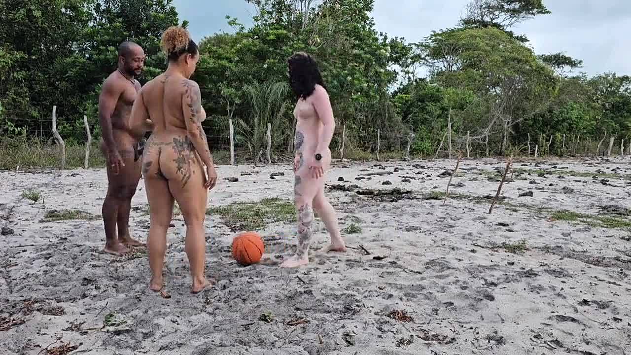 We played ball with the neighbor and ended up losing our tight asses in wild group fun.