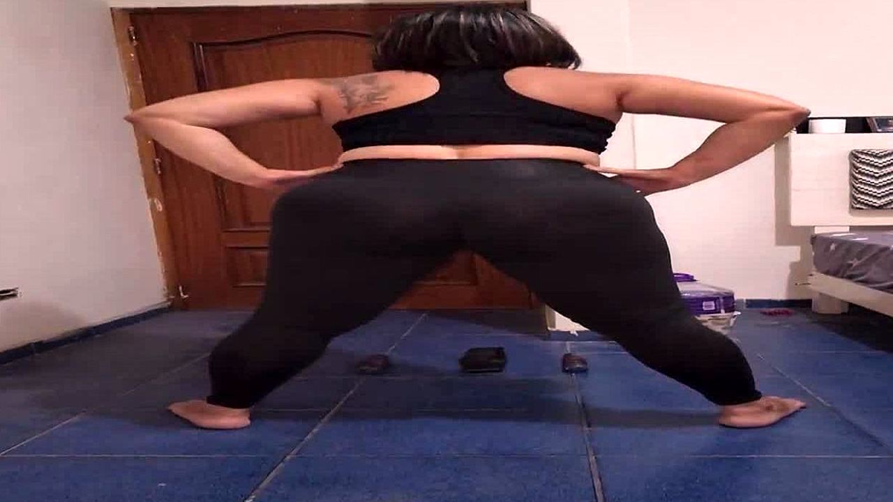 Are you watching this mature chubby milf doing workout in transparent leggings for flashing?