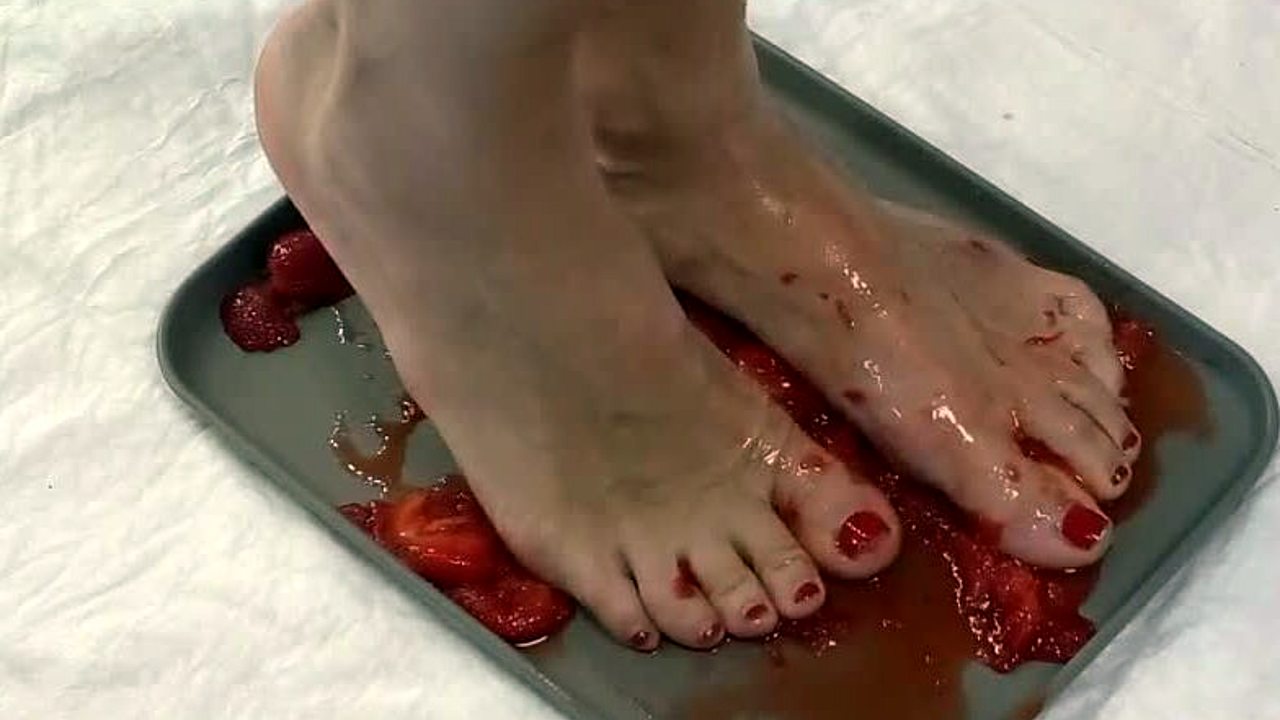 Watch me peeing on strawberries then trampling with cute feet! 😘