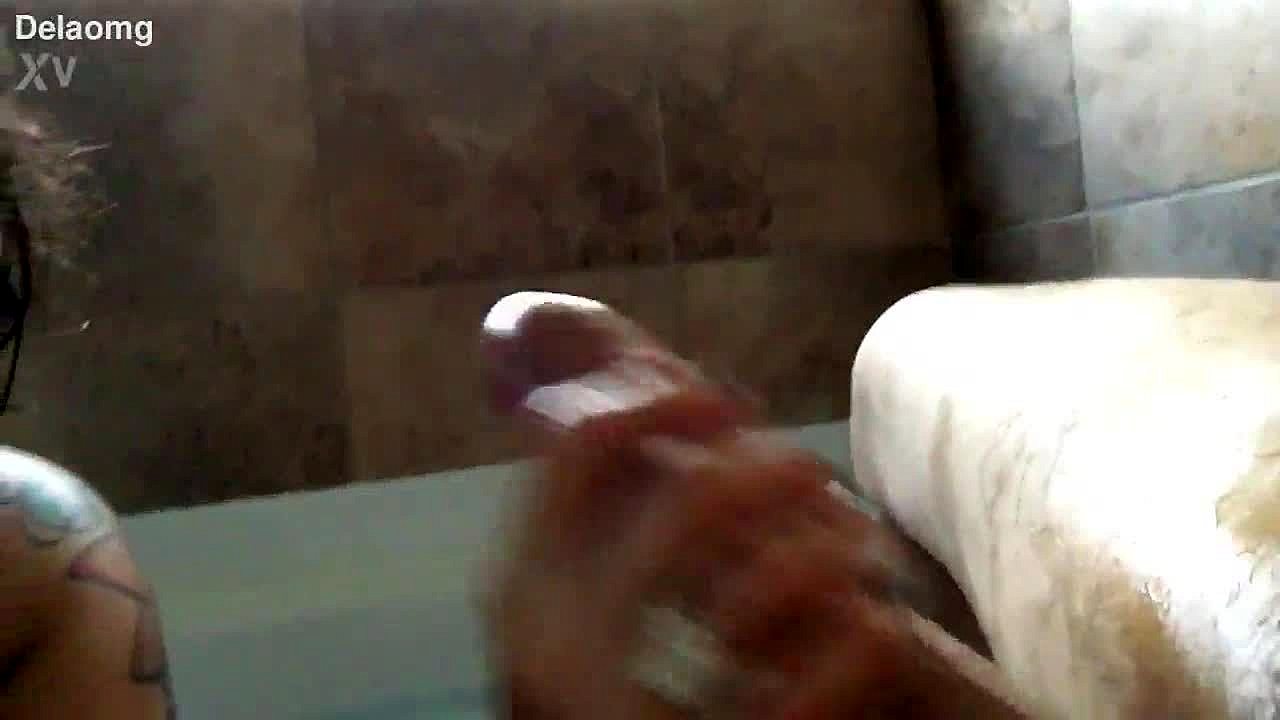 Mom delivers an amazing handjob to a big cock in the bathtub