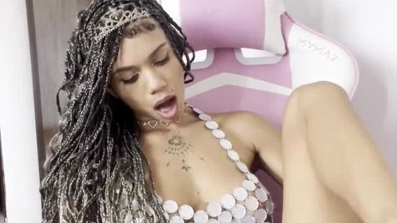 This brunette boldly stuffs toy dildo deep in her wet pussy with natural tits lingerie action.