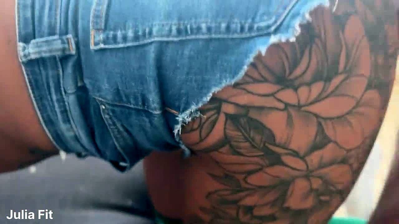 Beauty in stockings and shorts rides big cock with hairy pussy. she takes creampie in brazilian big ass.
