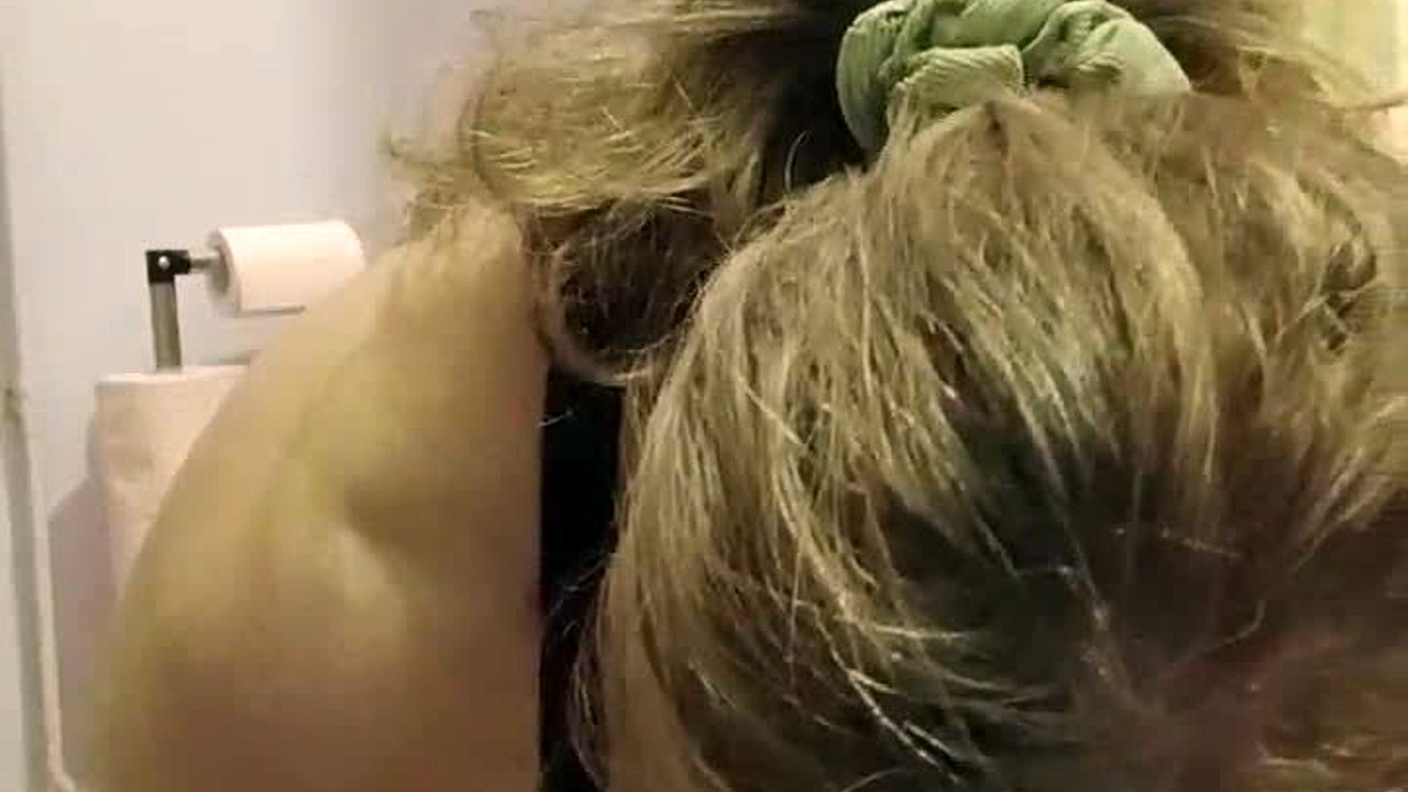 Esclave F, lick the toilet like a bound slut with your ass bent over and buttplug in.