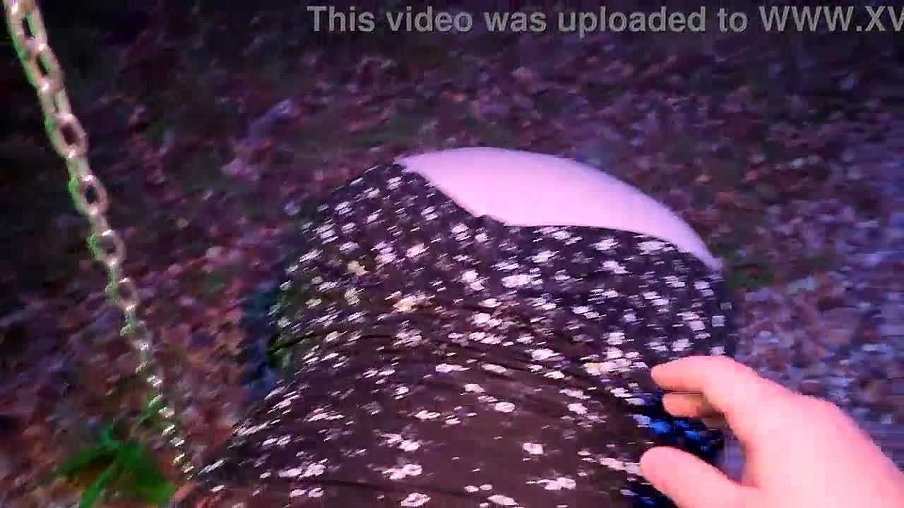 Fucked obedient fat girl on the swings in the village in the mouth and tight huge ass and cum on big tits