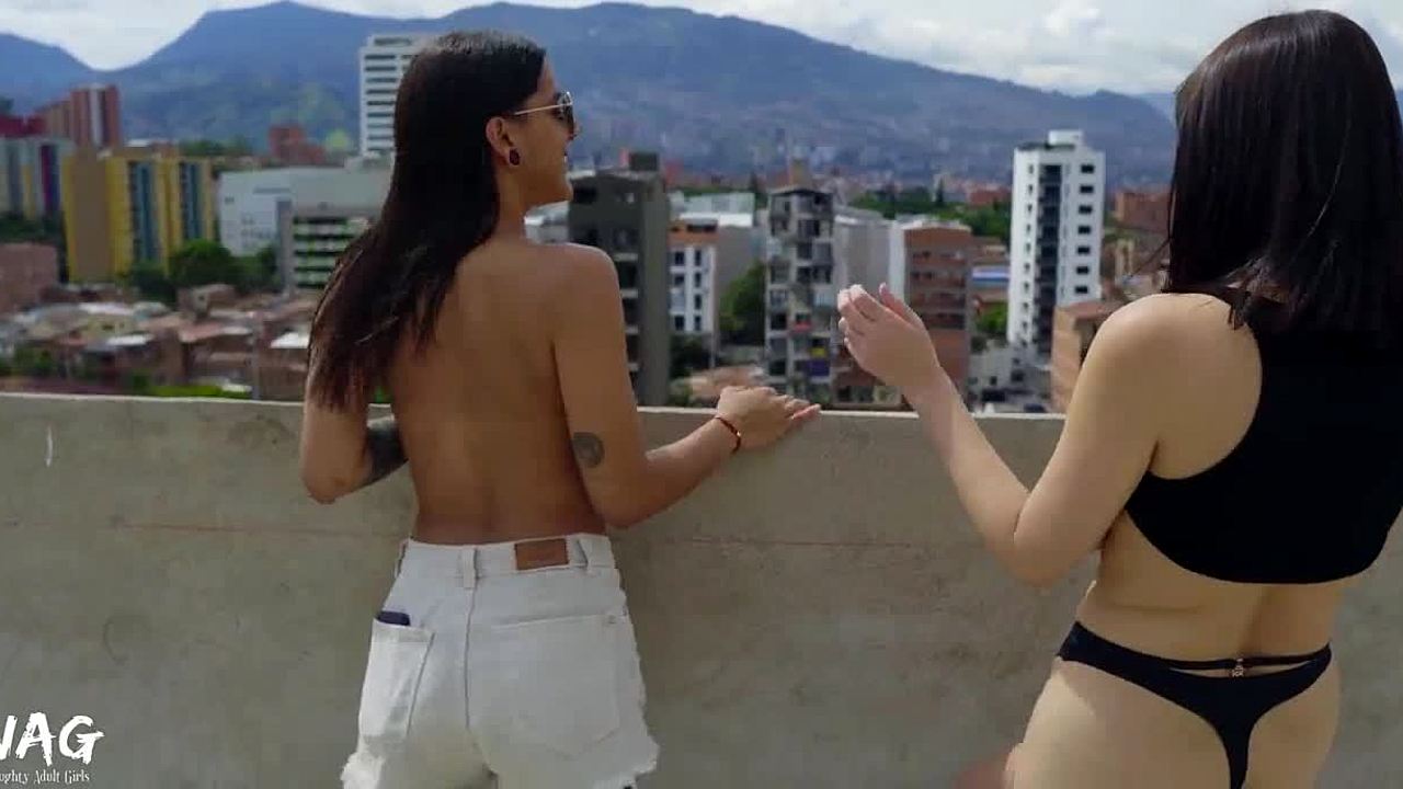 Exhibicionist sex on rooftop ends with construction worker fucking them hard