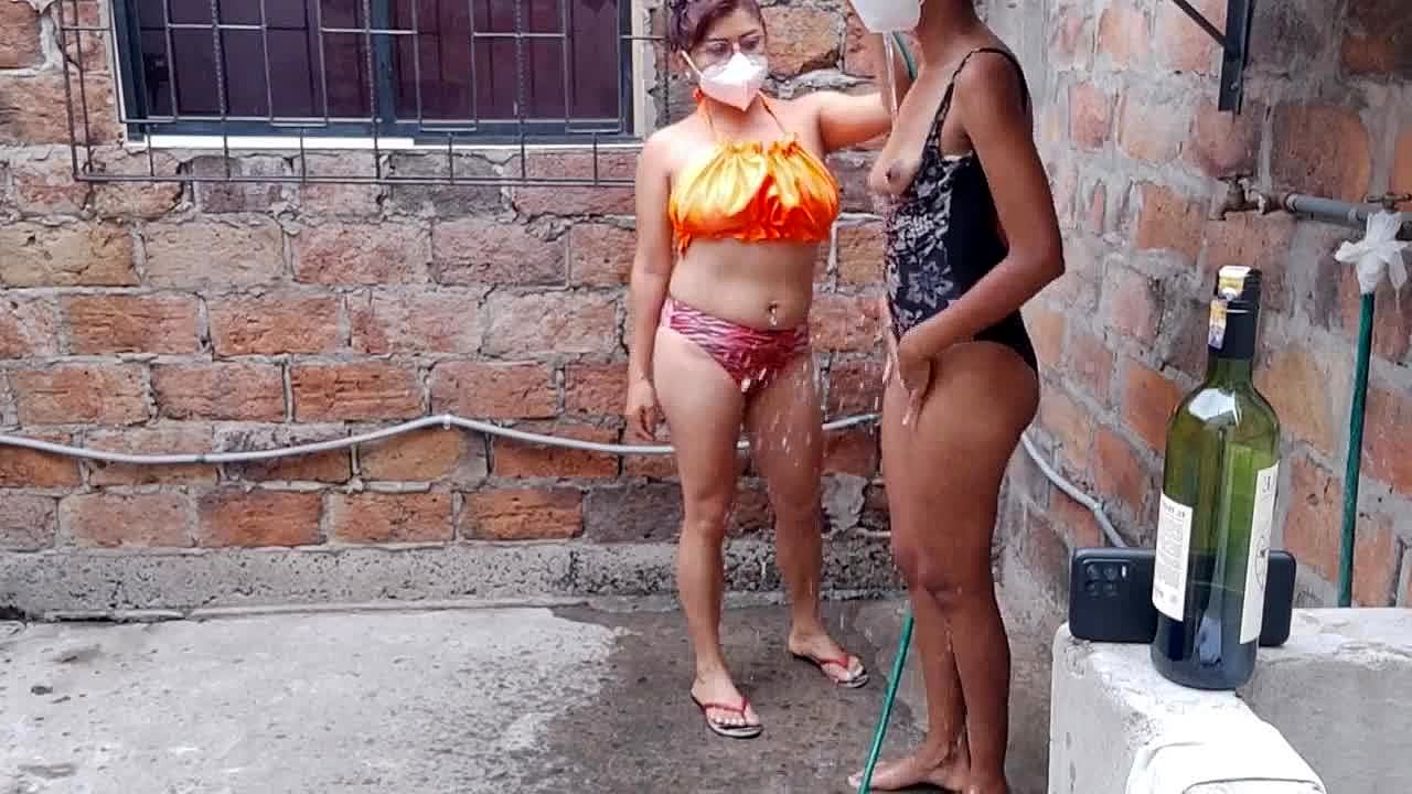 Whores enjoy day off with sensual bath in country house touching tits and vagina!