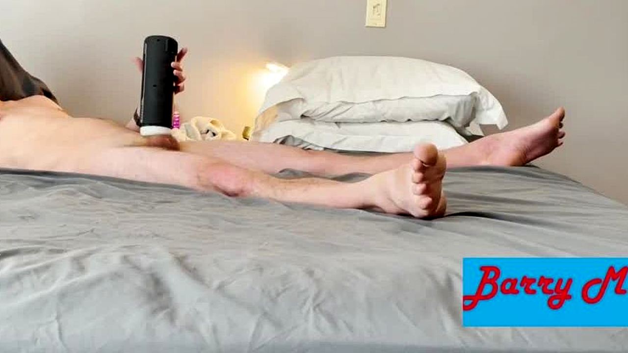 Solo guy edges intensely with vibrating sucking toy on big monster cock for orgasm