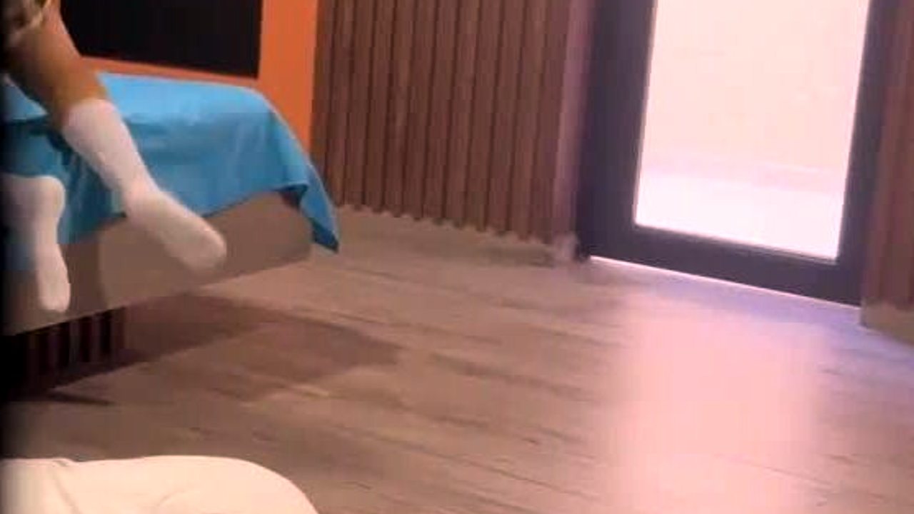 Teen arrives home to find nalgona hijastra breaking her big ass with anal toy. He masturbates until ejaculating while hearing her moans from wet pussy dripping.