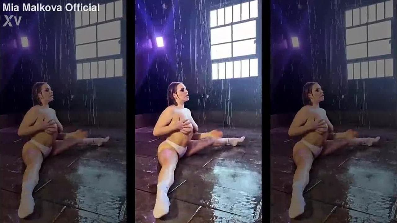 The blonde showed her big tits and ass while demonstrating flexible leg positions