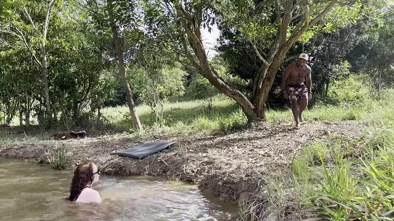 Albina boldly hooks up with a stranger in the woods for raw creampie sex