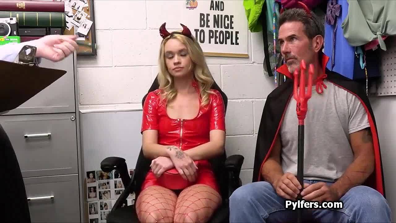Hey, why not let this chubby security guard join our threesome at the office after stripping those sexy thieves?