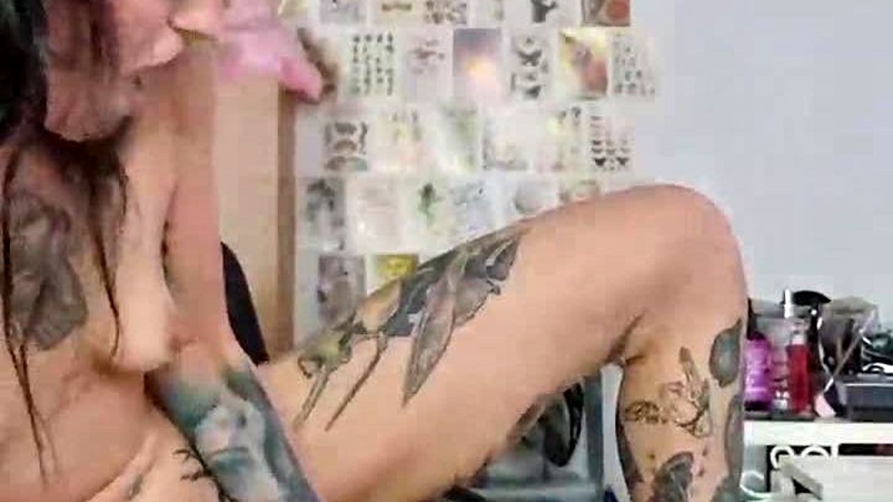 Contrasting tall skinny girl with tattoos rides cock to moaning orgasm in pov
