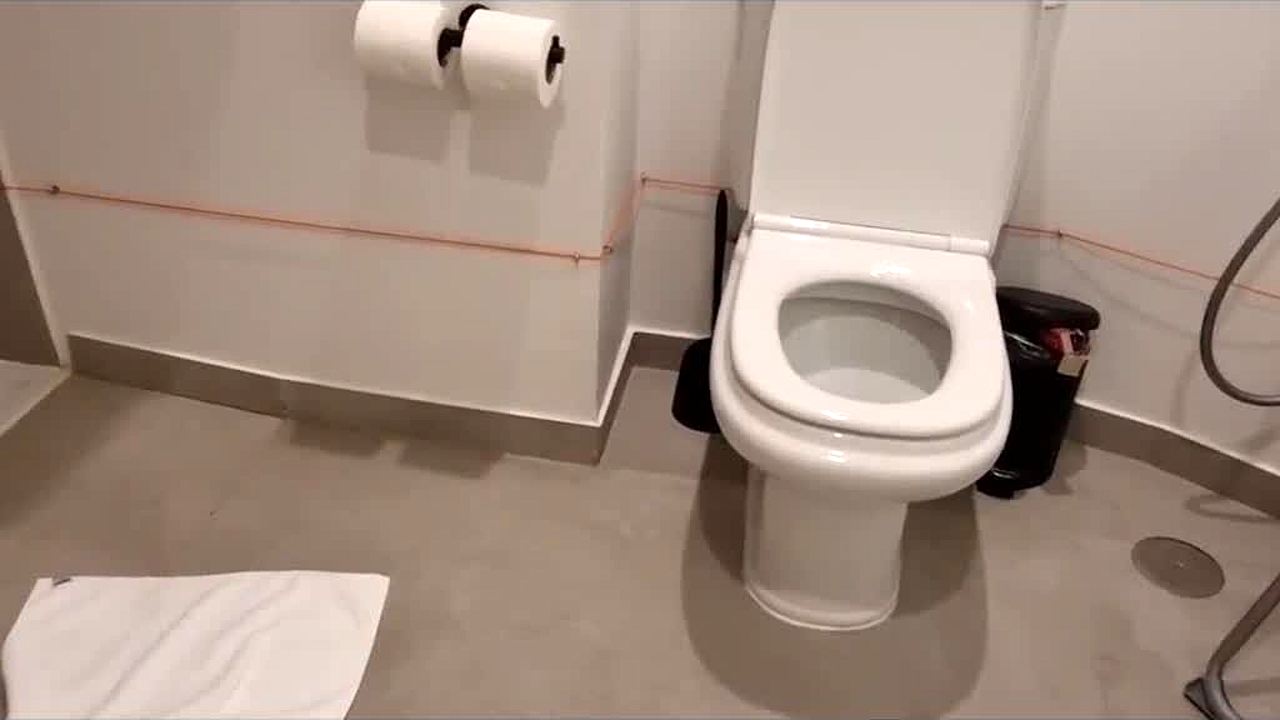 My girlfriend is taking a bath and I got caught filming but she actually likes it