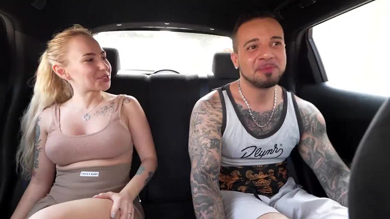 An Italian blonde passenger hooked up with the taxi driver for intense outdoor sex. They went from blowjob to rough cowgirl in the car.