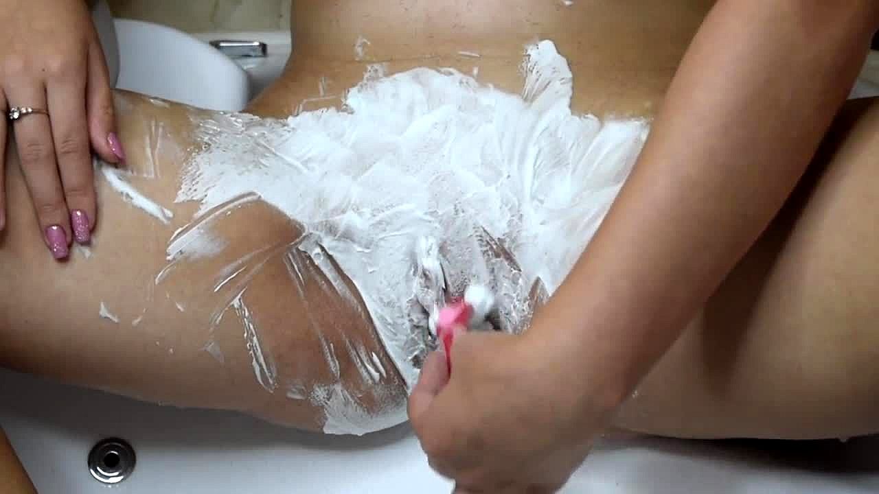 Wanna watch this hairy teen pussy get shaved smooth with trimmer and razor close-up