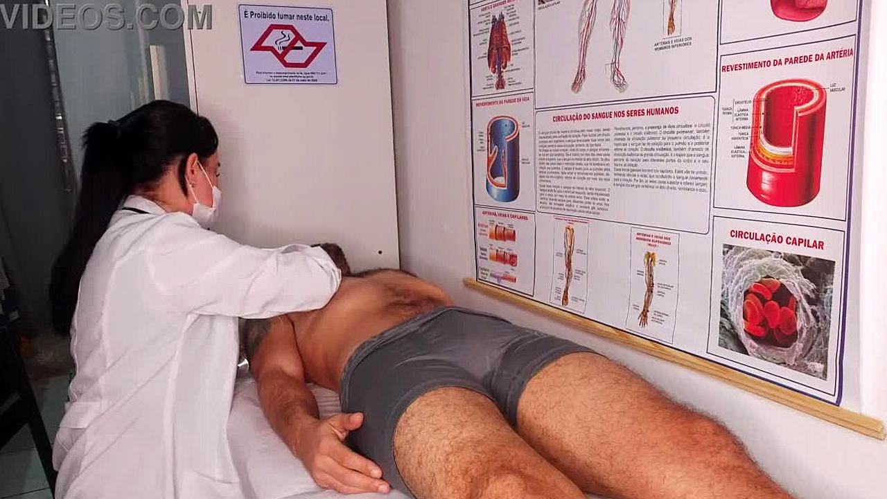 Nurse catches patient's massive erection and starts hot blowjob handjob session!
