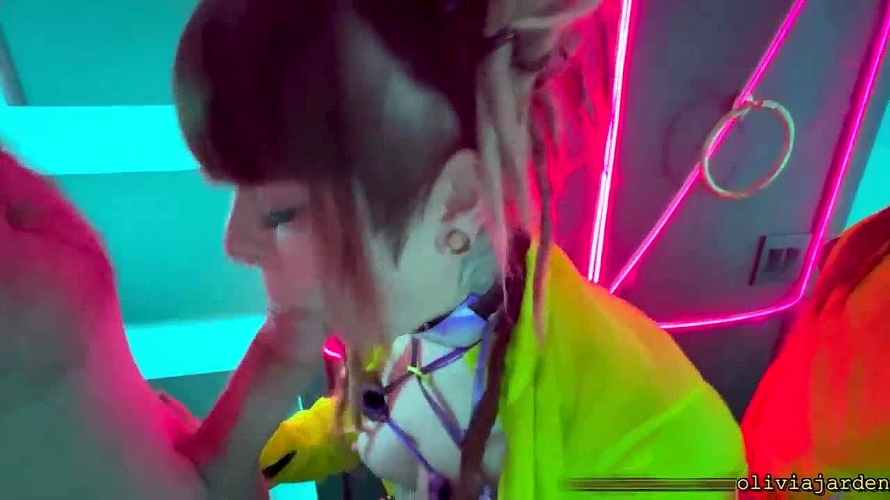 What Happens When a Goth Redhead Gives Sloppy Deepthroat in Rave Bathroom?