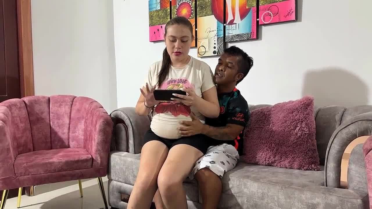 Mi hermanastro enano cachondo rompe mi coño embarazado con su verga enorme