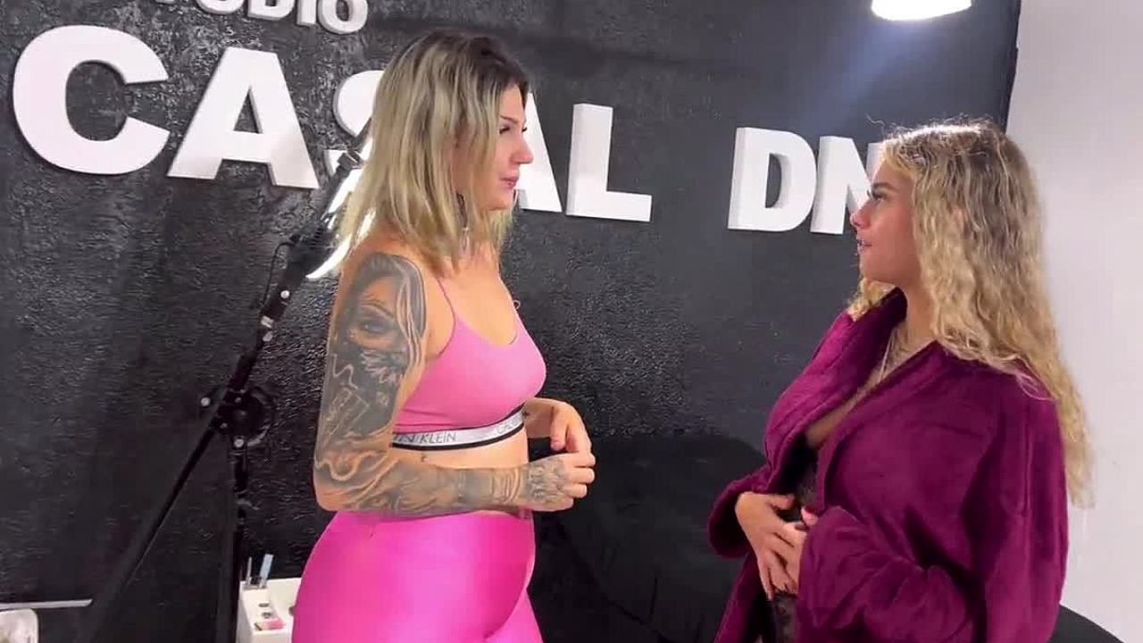 Pregnant woman tattoos wet pussy then begs anal creampie fuck
