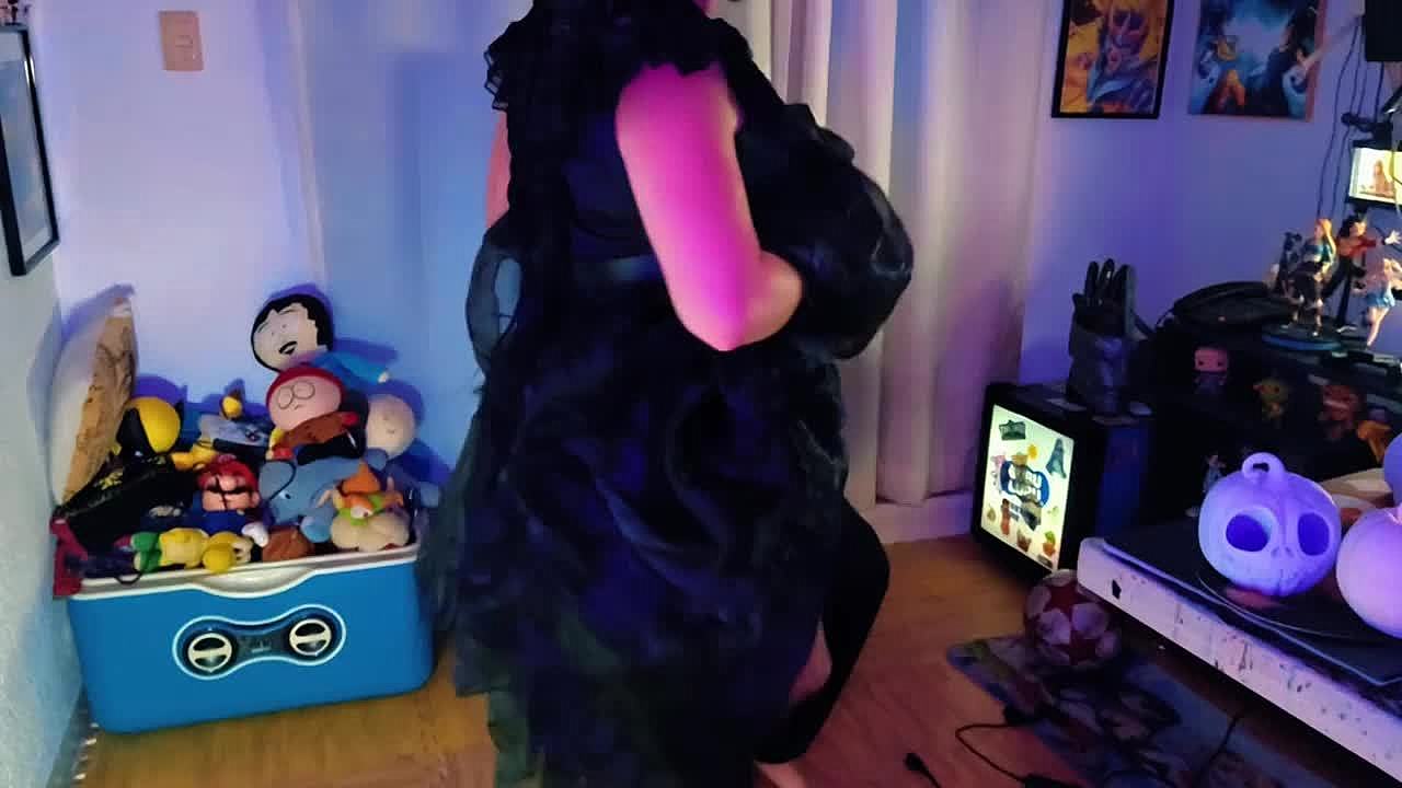 Hotwife dressed as merlina rides lover's cock with buttplug in tight shaved pussy