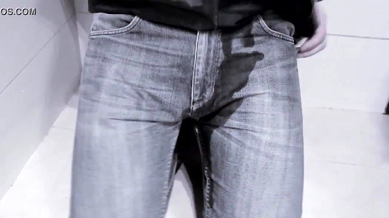 Girl pees right in her jeans inside the toilet