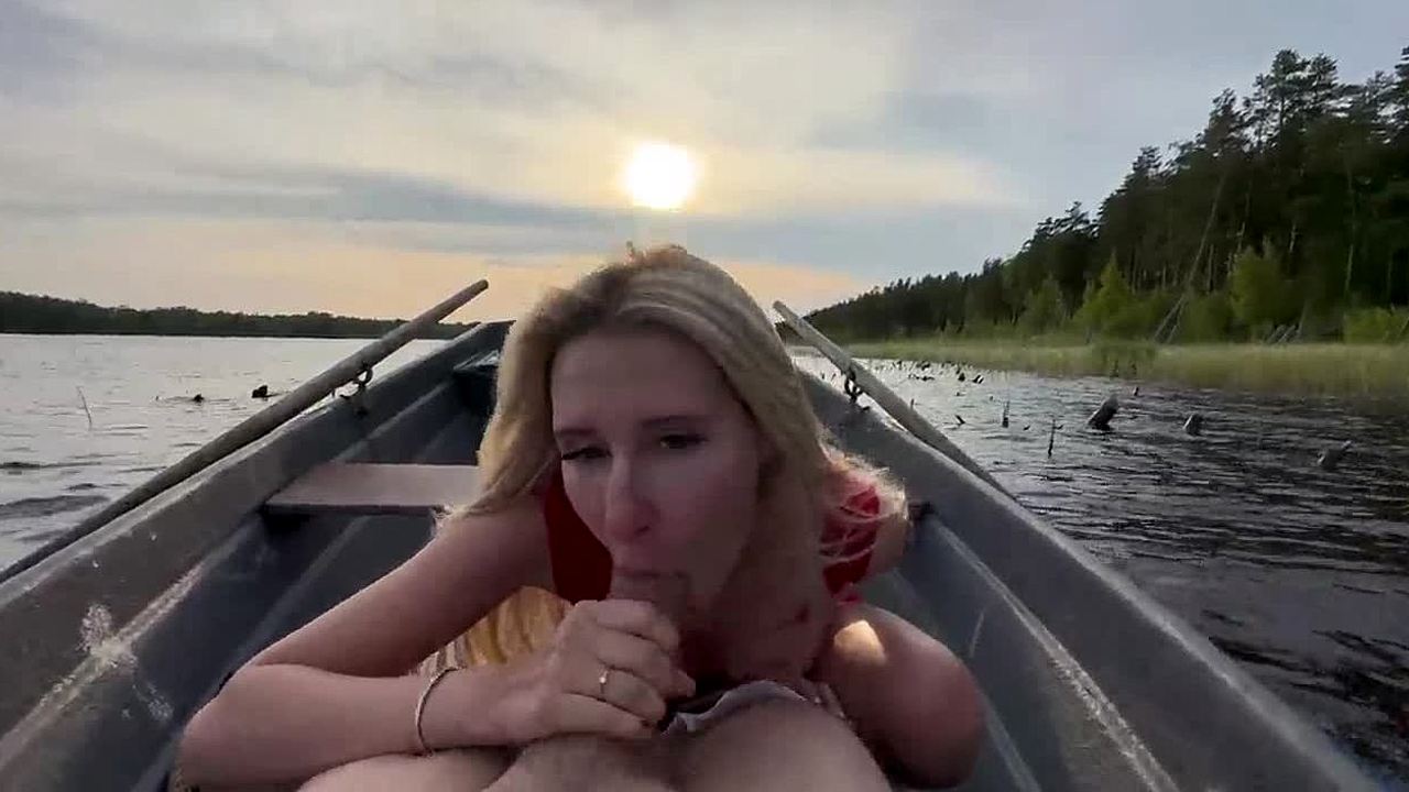 Amateur couple enjoys funny outdoor sex on lake boat