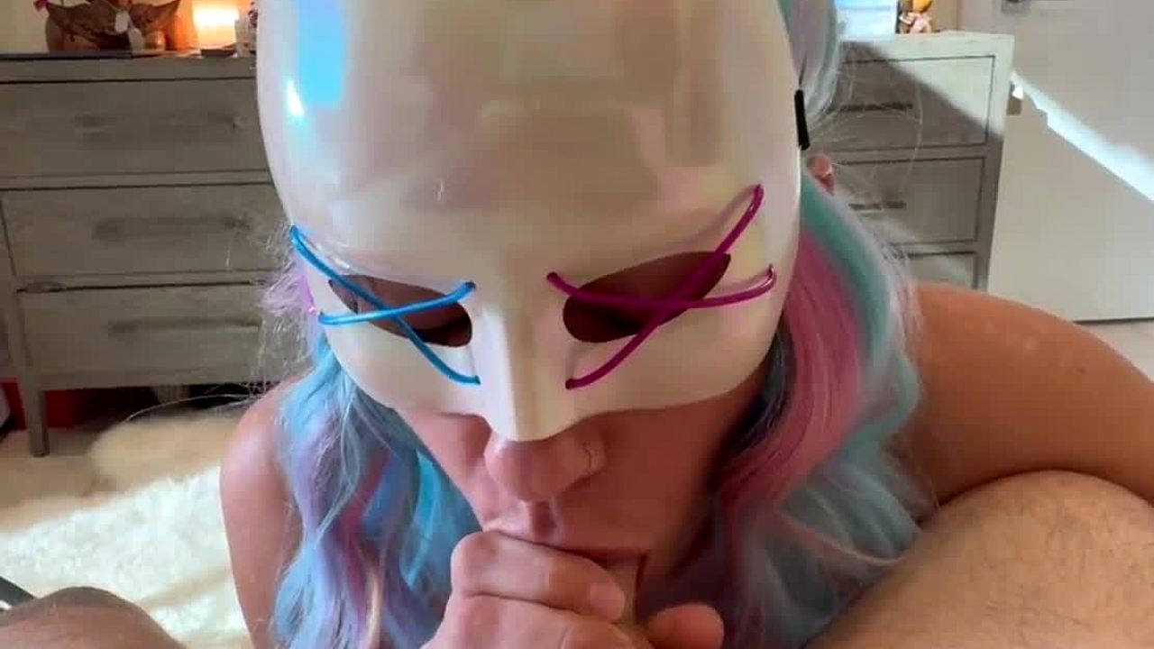 Bad bunny in costume deepthroats cock, squirts on it