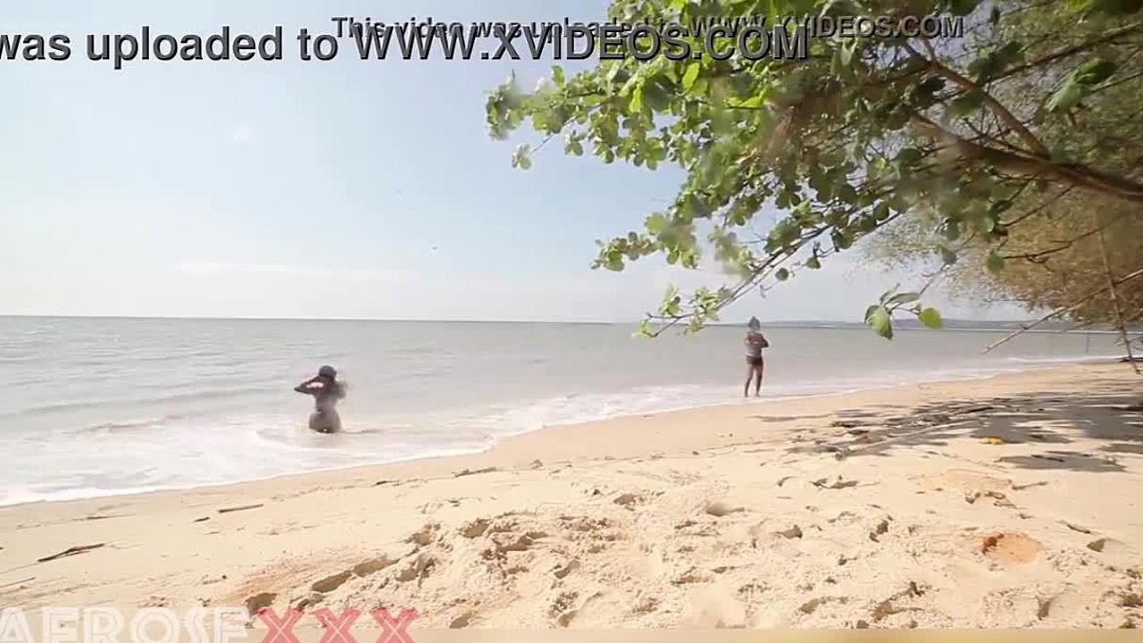 Caribbean naked ebony girl touched by stranger on beach after shower