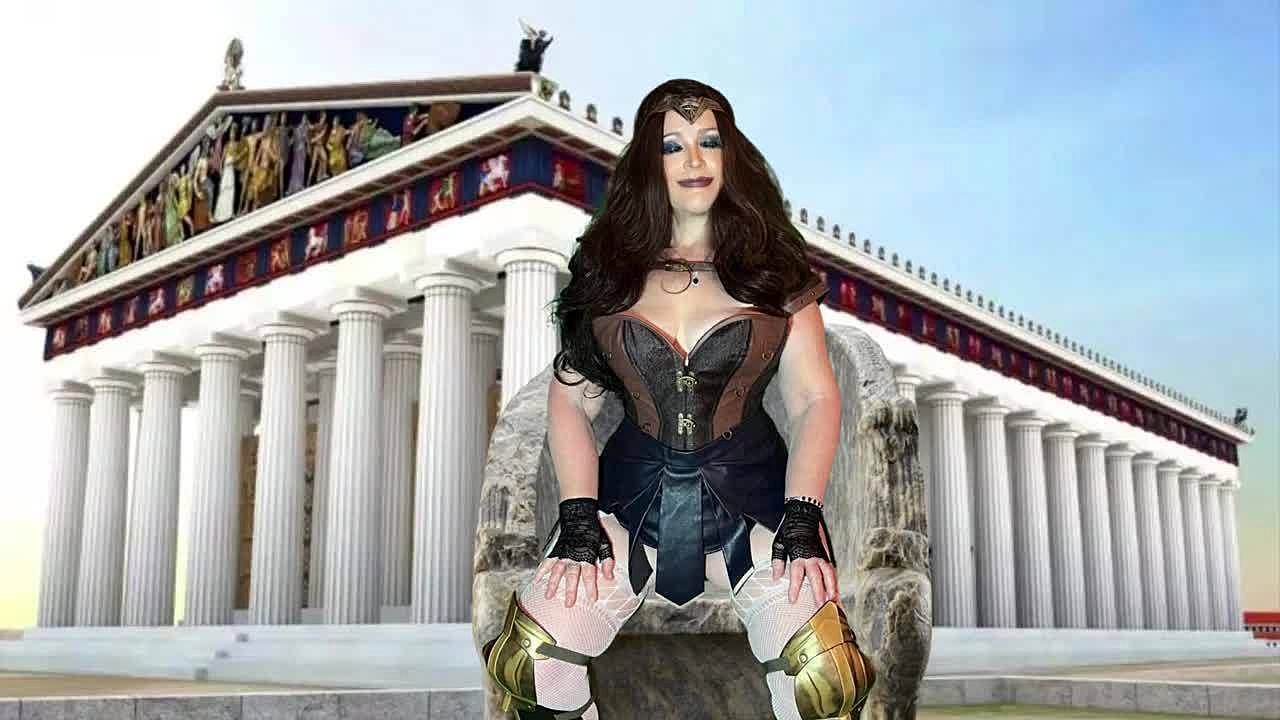 Granny wonder woman gilf masters deepthroating in costume pov action.