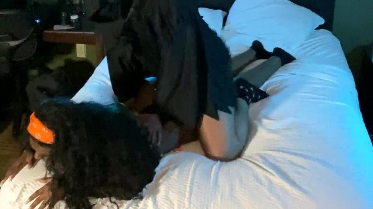 Look at this cheerleader slut riding big black cock rough and getting creampied.