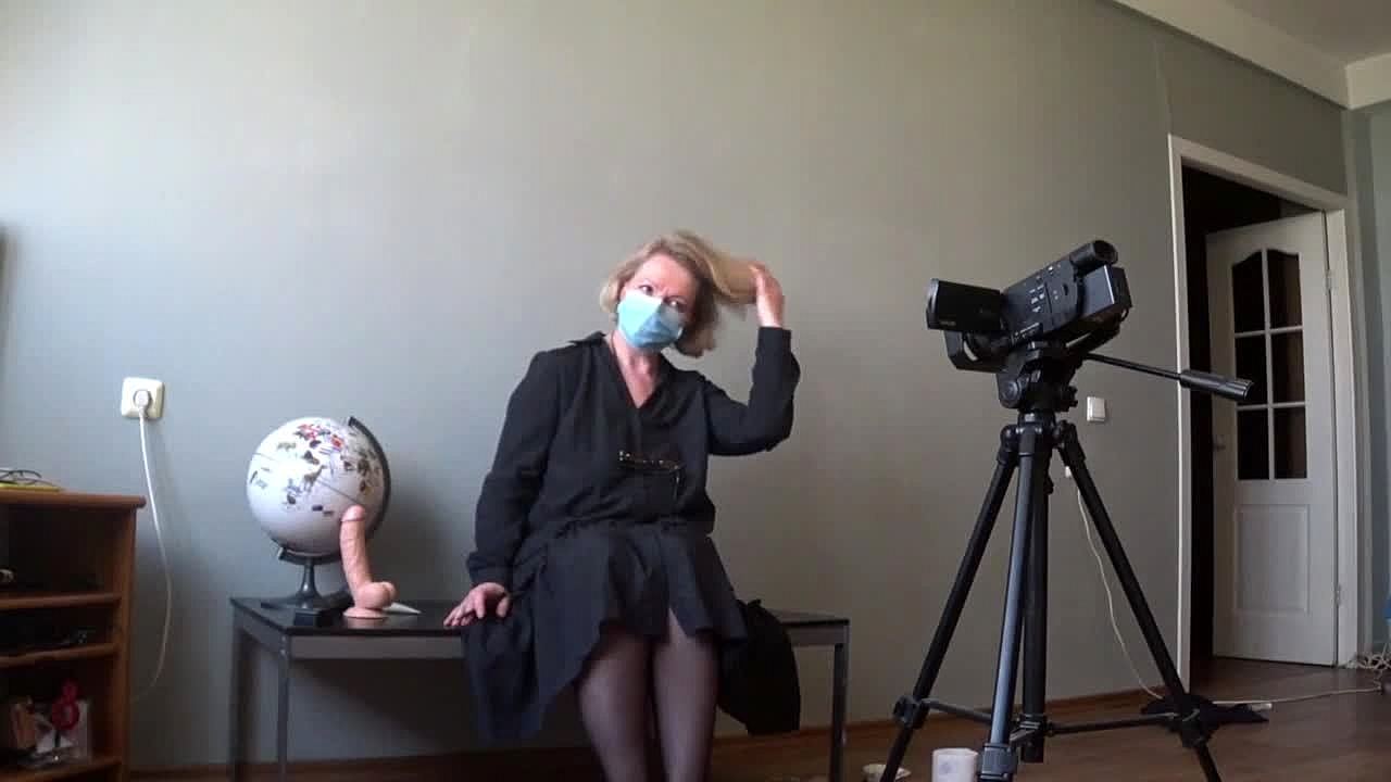 Behind the scenes of mature teacher's anal-vaginal toy play during anatomy lesson